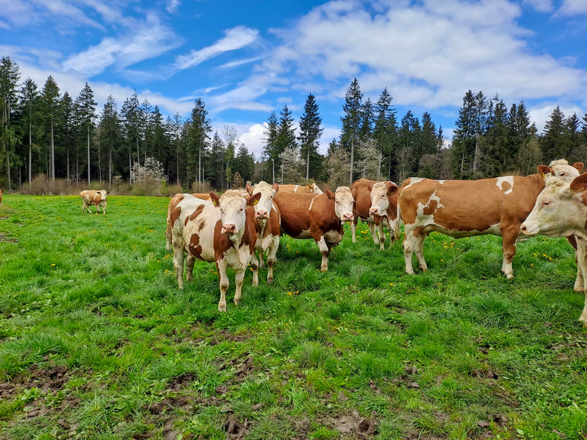 - Wir halten hauptsächlich Kühe zur Gewinnung von Milch und Fleisch, es tummelt sich aber noch so allerhand auf dem Hof: Neben gackernden Hühnern und unsrem Hofhund Rosi entdecken sie auch mal eine unserer Katzen beim Mäuse fangen. Gerne dürfen unsere großen und kleinen Gäste beim Füttern mithelfen oder die Tiere streicheln - eine Extraportion Streicheleinheiten nehmen sie gerne an ...